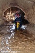 Ils reconnaissent également un étroit conduit aval sur 15m, et plongent le siphon Sud-Ouest sur 30m, jusqu'aux limites d'autonomie (R. Nerva).