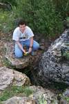 En 1985, je réalise une désobstruction près du puits d'entrée et découvre avec P.Mathon et H.Pelletier 3( m de petites galeries ; deux mois plus tard, avec J.Soret (C.S.S.P.G.), nous rajoutons 30 m et butons sur un siphor. pratiquement au niveau de l'Ardèche .