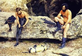 En 1978 Jean-Marc Mattet plonge le siphon terminal sur 150m (-38). En 1979 avec Lucienne Golenvaux, ils progressent jusqu'à 200m (-50). En Avril 1980, Olivier Isler poursuit cette jusqu'a 220m (-66) "arrêt sur puits". Le 13/10/1989, Patrick Jolivet revoir le terminus. En Mai 1992 Planéte Bleue, effectue une étude sur le Sphaeromidès Raymondi.