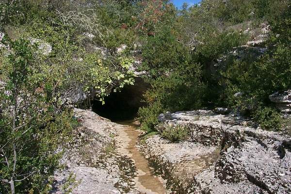 Une petite grotte en forme de conduite forcée (2,5m x 1,7m) s'ouvre au fond d'un talweg. Cette résurgence coule lors des périodes pluvieuses. Il faut y pénétrer de quelques mètres pour entendre un écoulement sous-jacent. Un système complexe entraîne l'eau au Chassezac en englobant les eaux du Bourbouillet.