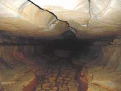 Passé une trémie, 200m de galerie basse (1x1,5m) et aquatique conduisent au second siphon (120m;-43).