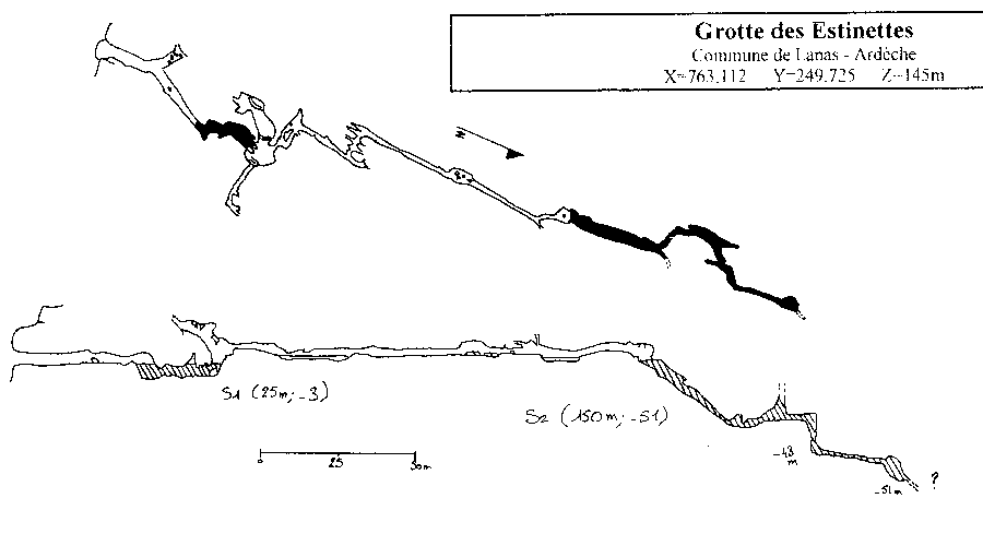 Une courte galerie (60m) conduit au S.1 (25m;-3) qui s'assèche en période d'étiage prononcé.