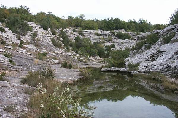 bien visibles. La résurgence est pointée sur la carte I.G.N.