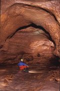 En rive gauche, on remonte d'une dizaine de mètres vers le sommet de la salle, défendu par une escalade de 4m ponctuée d'une étroiture verticale. Un joli balcon domine alors le volume, prolongé par une galerie qui bute 10m plus loin sur une coulée.