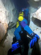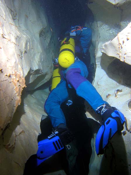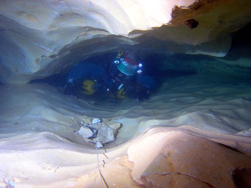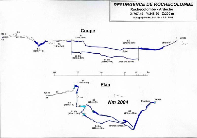 droite sur 120m, -20 après désobstruction subaquatique du laminoir d’entrée.