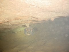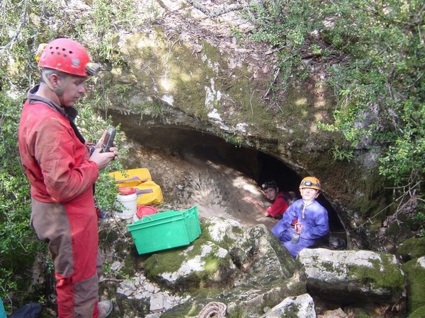 Situation De St Alban Sous Sampzon vers Chandolas, la D208 enjambe un ruisseau au niveau du captage du Ranc d Avene, 250 metres environ en amont de ce pont, l entree s ouvre derriere un sous bois en RD. Historique Siphon franchi par Robert Lacroux, puis revu par le GRPS au début des années 1970. Description 60 m de galerie amene au S1 ( 25 M -3 ), nbx puits remontant post siphon. A une trentaine de mètres de l'entrée, le siphon (18m) débouche dans une diaclase (4 x 5m). Une zone d'effondrement réduit les dimensions de la galerie, qui reprend son gabarit initial durant une centaine de mètres. Un nouvel éboulis, sous lequel un passage étroit rejoint une galerie concrétionnée. Une étroiture rejoint un conduit étroit. Le 08/03/08, JP Giangordano, JC Leroy, Cat Duffaut, A Chabanis, tente un reperage par balise ARVA post siphon avec l aven du sapin, situe au dessus de la grotte sur le plateau. Une liaison par talkie walkie est etablie a 120 m de l entree du Tirbirou et 35 metres d epaisseur de calcaire, quand la seconde equipe se trouve au fond de l aven du sapin ( -10 m ). Il y a peu d espoir evident de relation entre les 2 cavites.