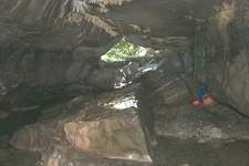 dans une vaste fracture (3 x 5m). 70m plus loin, après une petite cascade,