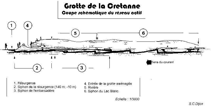 En 1994, le S.C. Dijon a levé la topographie du réseau exondé accessible à partir de la "cloche".