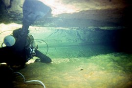 La grotte fait l'objet d'un aménagement touristique et la source est captée. Ajouté à çà, le comportement des plongeurs-touristes débarquant le week-end, sans égard pour le site et la population locale autant de raisons qui rendent aujourd'hui les plongées pratiquement impossibles.