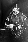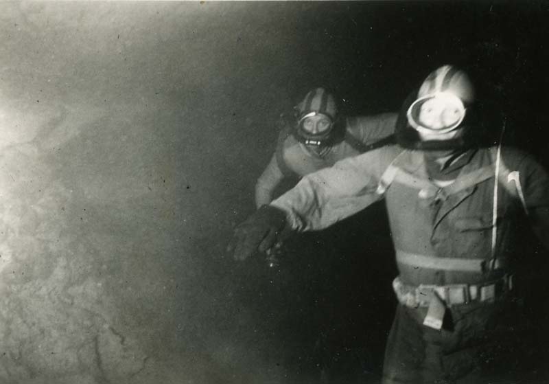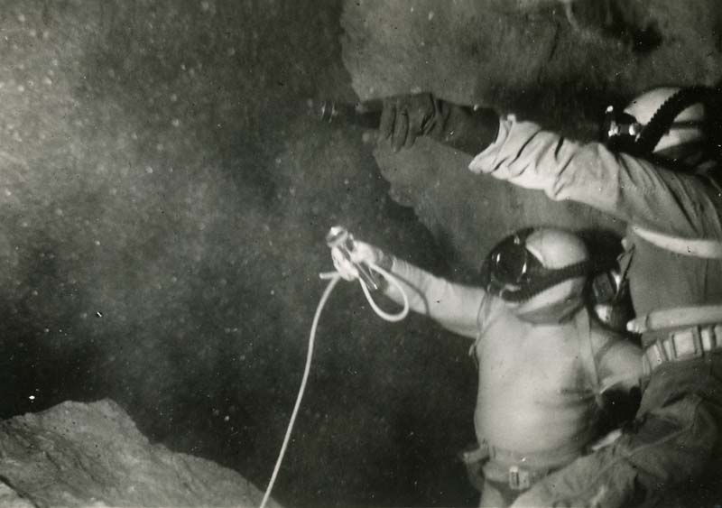 En 1953, le S.C.Dijon d'abord seul, puis avec le concours du S.C.Paris tente quelques plongées. Le siphon est reconnu sur une centaine de mètres dans une galerie faiblement immergée, le plus souvent basse et assez large (3 x 1m). L'arrêt des plongeurs se situe au pied d'un puits noyé à –14m. D'autres boyaux annexes, proches de l 'entrée, seront explorés sur environ 50 mètres. En 1968, 50 mètres de plus sont gagnés au delà du terminus de 1953. La suite devient petite et peu engageante. En 1976, l'arrivée d'eau principale est localisée à 50 mètres de l'entrée (puits de la Chaussette). Après un parcours accidenté de 70 m (-16 m), les plongeurs opèrent la jonction avec le réseau noyé du siphon de l'embarcadère découvert en 1975, par le biais d'une superbe diaclase de 30 mètres de long et de 10 mètres de hauteur. De plus, ils dénichent la suite amont de ces deux siphons et font surface dans une cloche importante à 230 m de l'entrée. Au delà de ce point, le passage noyé suivant atteint de grandes proportions (environ 10 mètres de large). A 130 m de la cloche (-10 mètres), une zone d'éboulis et de dalles effondrées empêche toute continuation.