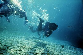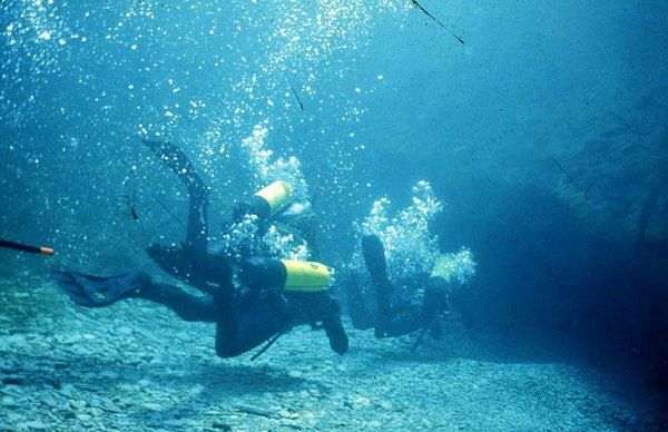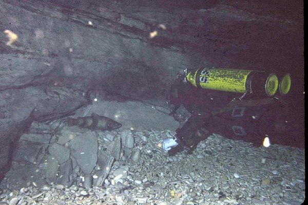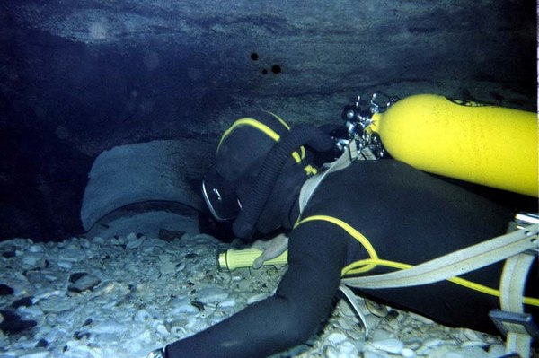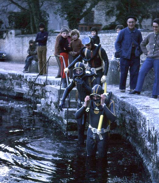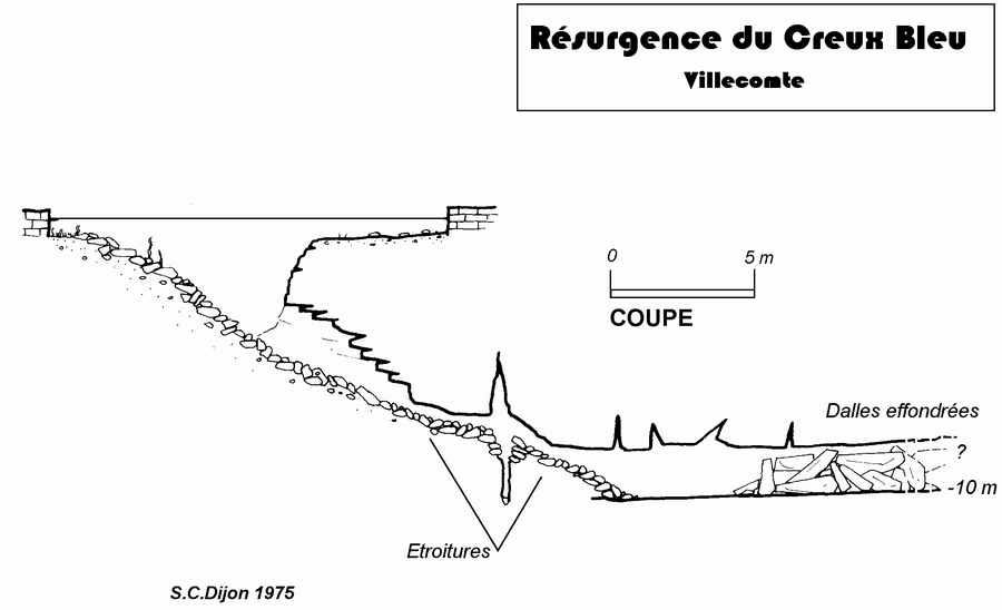 Résurgence des eaux du réseau Soucy - Combe aux Prêtres - Nonceuil (Francheville). Première plongée réalisée, semble-t-il, avant 1970 par la S.S.B. En 1972, un plongeur du G. S. Fains les Sources franchit deux étroitures à la base de l'entonnoir d'entrée et aboutit dans une salle aux parois très sombres (-10 m). En juillet 1975, le S.C. Dijon butte quelques mètres plus loin sur une trémie composée de grandes dalles effondrées. La progression en décapelé est très faible. Malgré les nombreuses plongées réalisées depuis cette époque, aucune avancée significative n'a été enregistrée.