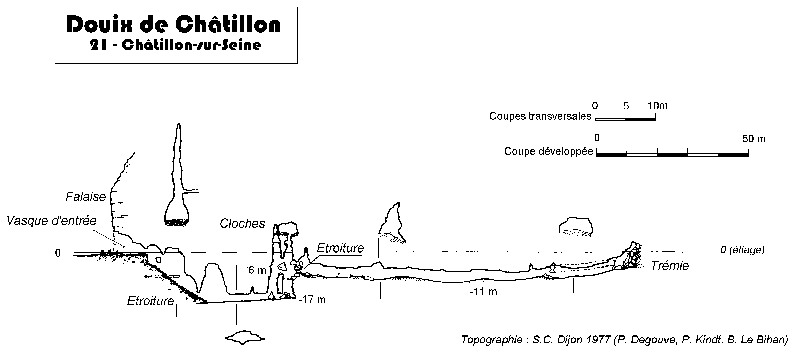 D'après Pierre Laureau « Inventaire des plongées souterraines réalisées dans le département de Côte d'Or. » Bul. A.S.E.n°10 –Sous le plancher- p.9-30.