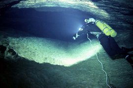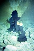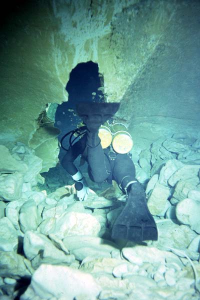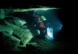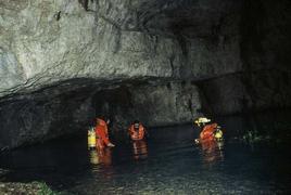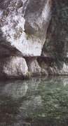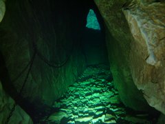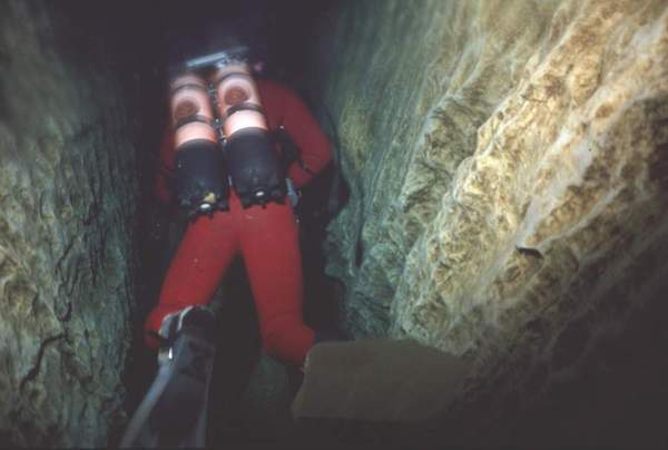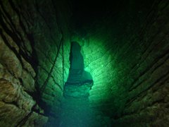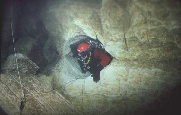 Conduit unique entièrement noyé limité en amont par une trémie qui semble très localisée (165m de l'entrée, -6m ; point bas à –17).