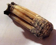 " ...Deux vestiges que j'ai trouvés fortuitement en plongée dans la Douix de Chatillon sur Seine (en 2003 ou 2004), à environ - 6 mètres de profond dans le talus d'éboulis de la diaclase d'entrée.