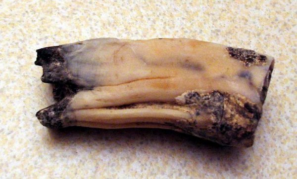 Il s'agit dune dent (de cheval) et d'une pièce identifiée par Pierre BUVOT (Président du Spéléo Club de Dijon et Archéologue à la DRAC Bourgogne) comme un Liard français, daté fin XVIIe (avant la Révolution)...".