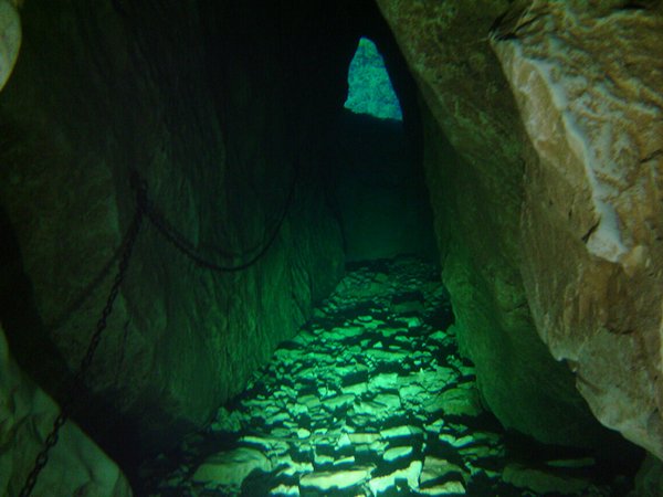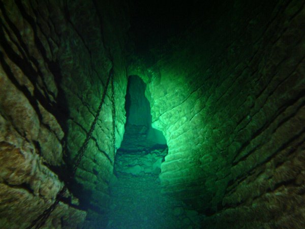 La source de la Douix est équipée dans sa première partie non pas par un fil mais par une chaîne! Un fil d'ariane soigneusement installé permet ensuite de ne pas avoir à dérouler son propre fil.