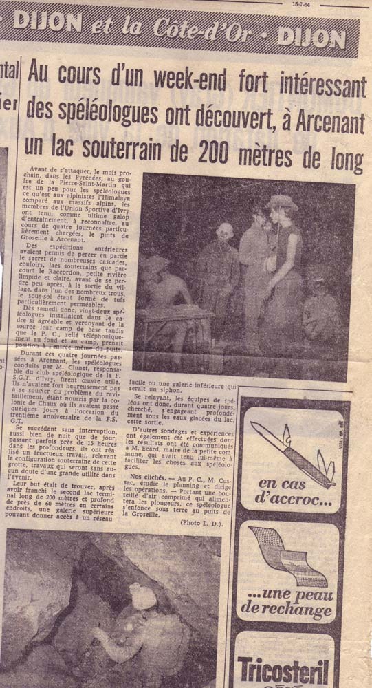 1964 - Section spéléologique de la mairie d'Ivry 1964 - S.C. Dijon : R. COGNET - R. RORATO