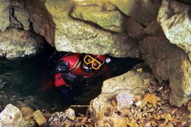 Historique 1974 - S.C. Dijon : M. COUDEGNIAT - P. KINDT Description Petite dépression rocheuse dont le fond (-3 m) est occupé par un plan d'eau. C'est une émergence temporaire dont la sortie pérenne pourrait être la source du lavoir à Velars sur Ouche. Après quelques séances subaquatiques de terrassement, un modeste conduit est exploré sur une quinzaine de mètres (- 3 m) par le S.C. Dijon en 1977 et 84. Les risques d'éboulement limitaient la fougue des plongeurs. Une fois les travaux de consolidation effectués en 1986, la progression repris jusqu'à 74 m de l'entrée (-14 m) : arrêt sur laminoir très étroit. Quelques mètres supplémentaires seront gagnée en 1993 et 94. Bibliographie DEGOUVE (P) - 1987 - Nouvelle découverte sur le réseau de la source aux oiseaux - "Sous le Plancher" - Bulletin de la ligue spéléologique de Bourgogne n° 2 p 32 à 37. |