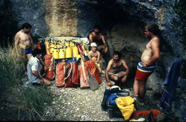 1981 - Bernard Glon et Joël Enndewell plonge sur 300 m et pour la première fois le siphon du cantonnier. Ce siphon est plongée de l'autre côté, de l'intérieur de la cavité par Pierre Morel.