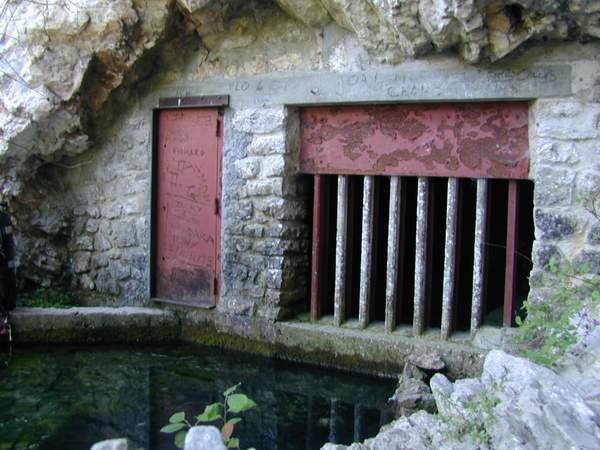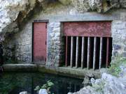 L'entrée de la cavité, captée pour alimenter le commune de PONT-en-ROYANS, se niche au sommet de la cascade. L'accès en est défendu par une grille.