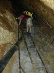 En conservant la même pente, on poursuit jusqu'à une nouvelle patte d'oie à -65 (400m). Par la partie basse, la profondeur de -76 est rapidement atteinte (440m). Marquée par une brève remontée, la galerie enchaîne ensuite une série de ressauts jusqu'à -135 et après un tronçon horizontal d'une vingtaine de mètres, plonge à nouveau. Arrêt à -137m.