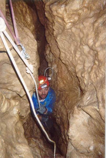 Un an plus tard, le trou est de nouveau équipé. Malheureusement, pour des raisons personnelles, David ne souhaite pas s'engager dans cette exploration et, d'un commun accord, nous décidons que je ferai la pointe avec Fredo Poggia. C'est ainsi que le 17 mai 2003, avec Frédo, nous réussissons à franchir le S14 et le S15 et à explorer une centaine de mètres de petite galerie avant de buter sur le S16.