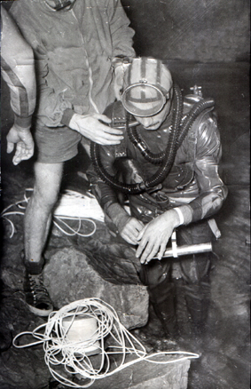 1979: Jean-Louis CAMUS descend à -47 (120m), puis Bertrand LEGER et Pierre ROUSSET poussent jusqu'à -74 (194m).