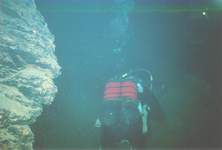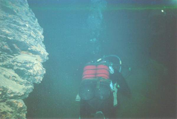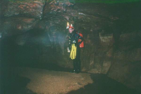 Au bout de 150 m de nage, nous arrivons au départ du S1. La plongée commence, les 100 premiers mètres sont spacieux, mais encombrés de matériels divers (câbles, morceaux de bois) ayant du servir aux premières explorations. Après une première cloche d’air, nous replongeons, cette fois pour parcourir les 800 derniers mètres du S1. D’abord avec un propulseur puis à la palme, nous refaisons ce parcours désormais familier, passons la zone " profonde " (- 24 m), puis ressortons à l’air libre au bout de trois quarts d’heure.