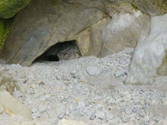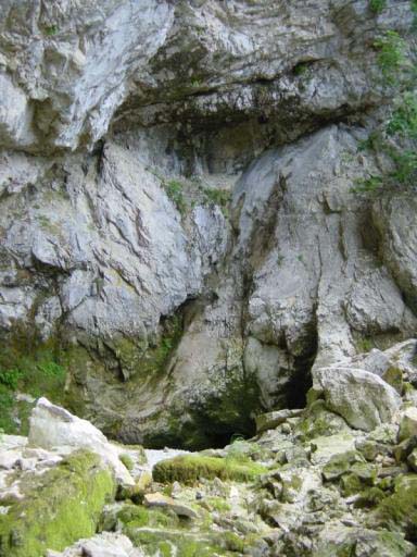 Un siphon aval (20m ;-4) émerge dans une salle qui communique à la voix avec le porche dentrée.