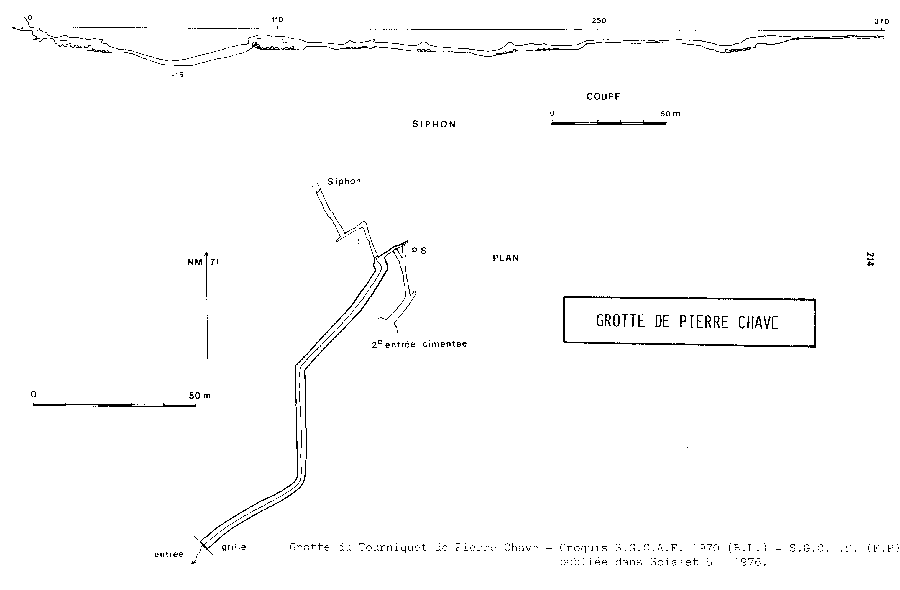 Les explorations ont réalisées par Fréddo Poggia du SGCAF il a exploré le siphon en cinq tentative en 1975 (10m, 115m, 250m, 330m, 370m).