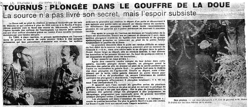 En avril 1978, les plongeurs du Spéléo-Club de Louhans (Jean-François
