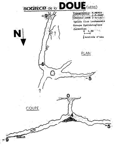 D’après la publication de Serge GUILLAUMIN (CDS 71) dans Sous le Plancher n° 3 de 1988 (pages 90 à 97), intitulée "Émergence de la Doue".