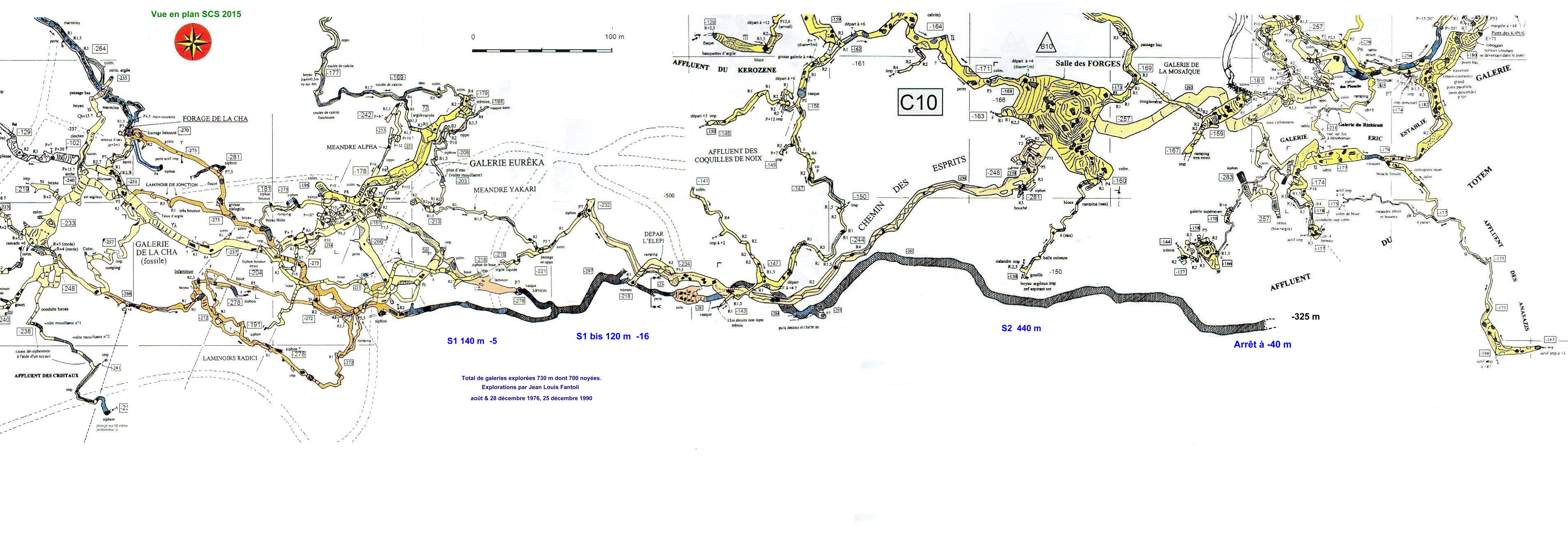 spacieuse de 10 x 10 m environ. Le système exploré développe 570 m dont 420 m
