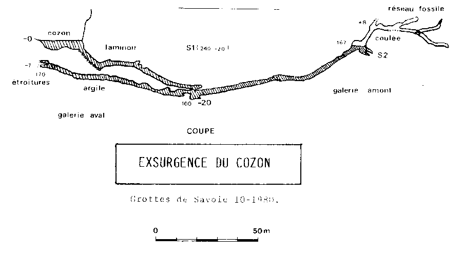 S.1 (167m ; -19) suivi de 100m de galeries jusquau S.2. |