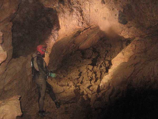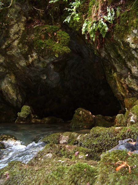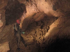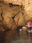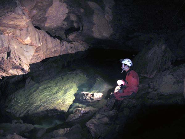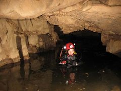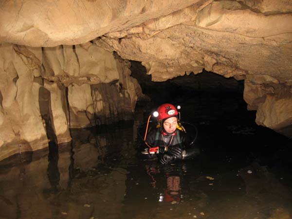 A l'étiage, la cavité est une grotte-gouffre, le niveau du siphon étant 25m plus bas que l'entrée.