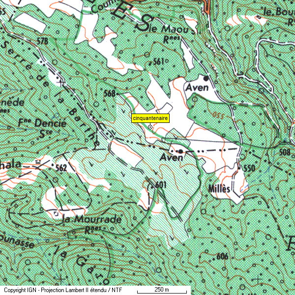 Carte IGN 1/25 000 2346 est "CAZILHAC" GPS : N 43° 3' 13'' E 002° 27' 9'' Lambert III : x= 609,457 km y= 3083,771 km Z= 564 m Développement: 710m
