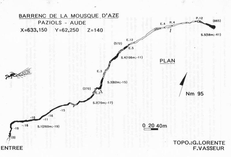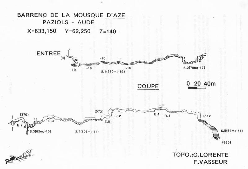 Le barrenc de la Mousque d'aze figure pour la première fois dans les publications spéléologiques en 1963. Henri SALVAYRE effectuait une première reconnaissance en apnée dans le siphon alors impénétrable.