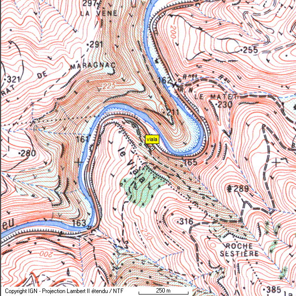 200m après le pont, en rive gauche, au-dessus d'un mur de soutènement.