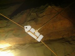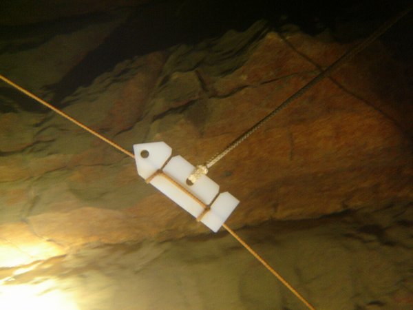 nous plaçons une corde spéléo en travers du lot, il faut