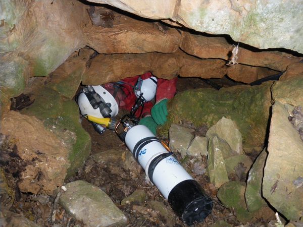 Situation A Fondamente,prendre la D93 (direction Roquefort) sur 4 km jusqu'au 1er embranchement (Louradou) après Saint Beaulize.Prendre cette petite route sinueuse sur 2 km.La cavité se trouve 10 mètres en contrebas de la route. Historique Le 18/09/93 Christian Bagarre,avec l'aide du SCSA(Jean-Louis Poujols,Jean-Denis Lacan et Claude Etienne)plonge le siphon terminal à 100 m de l'entrée.Arrêt à 210 m -16 sur rétrecissement à revoir. Description Après l'étroiture d'entrée,la galerie est de petit volume sur 50 mètres pour accéder à une modeste salle de 5 mètres de diamètre et 1m 60 de hauteur.Elle redevient étroite et basse de plafond jusqu'au siphon qui se trouve à 100 mètres de l'entrée. |