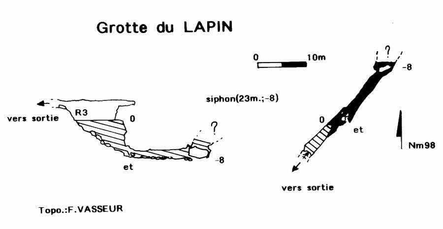 d'étroitures bute sur un siphon. Celui-ci (23m;-8) après une étroiture