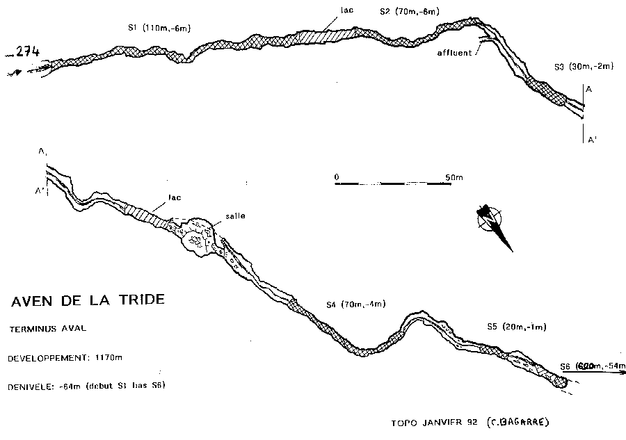 jusqu'au S.4(70m ;-4) puis le S.5(20m ;-1). Le S.6 développe 620m dont