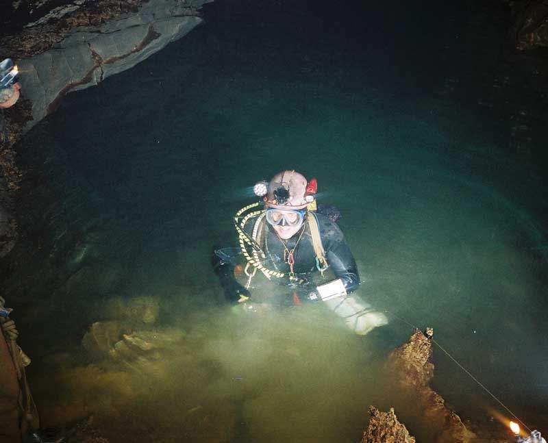dans l'amont en 1989, elle bute sur un siphon vierge à 1000m de l'entrée.