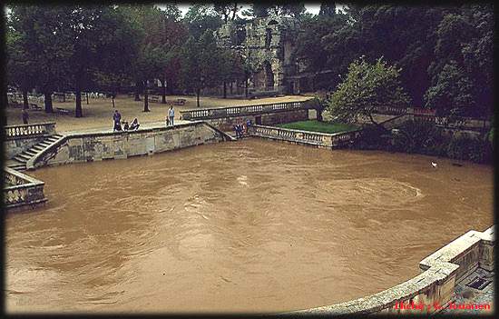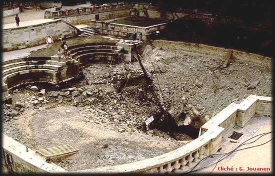Au cours d'une des plongées, Serge Gilly, incrédule, tombe nez à nez avec des poteries à même le sol d'une galerie en voie d'exploration. En synchronisme avec les plongées, le siphon 1970 est équipé en matériel de pompage. Le 28 août les essais sont satisfaisants et l'eau se met doucement à baisser. Malheureusement, dans la nuit du 31 août au 1er septembre, des précipitations importantes, nous obligeant à déséquiper le réseau, mettent fin au pompage de 1991. La totalité du réseau souterrain de la Fontaine de Nîmes est porté alors à environ 2900 mètres.