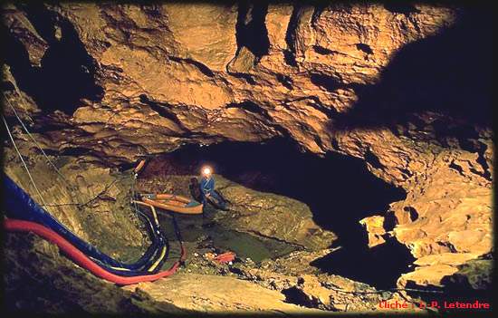 Le dimanche 25 août, le plongeur Guy Peigney, parti avec une équipe, trouve et franchit un passage au milieu de l'empilement de blocs du siphon 1970. A son grand émerveillement, il débouche à l'air libre dans une grande salle. Au-delà, une galerie aux dimensions imposantes se développe. Plusieurs journées seront nécessaires pour continuer l'exploration et effectuer les relevés topographiques et scientifiques.