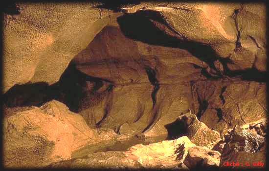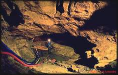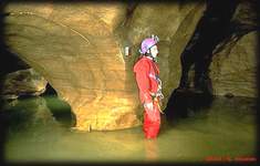 NEMAUSA XIV - L'expédition commence le 8 août 1998 et le pompage le lundi 10 août. Le réseau est accessible le 15 août et délivre toute sa beauté : cascades, galerie des Chailles, réseau aval... La galerie des Chailles, vient apporter la solution pour la suite du réseau amont. En effet, le terminus, avant l'expédition Nemausa XIV, était un passage quasiment infranchissable (laminoir) pour les plongeurs.La galerie des Chailles permet de court-circuiter cette difficulté et ouvre l'accès sur une galerie de belles dimensions.