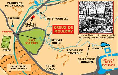 Cette découverte très importante, au point de vue spéléologique, et l'écart de datation existant entre les deux poteries, confirme qu'au moins un puits naturel était ouvert durant plusieurs siècles sur le réseau souterrain où, pense-t-on, les habitants allaient puiser de l'eau. Aussi, après la mise à jour de la topographie, les spéléologues sont persuadés que ce puits se trouvait au lieu-dit Creux de Moulery" (Clos des Pins), exutoire maintenant colmaté de la Fontaine en période de crue et qui a pu être créé accidentellement par l'exploitation d'une carrière par les Romains.