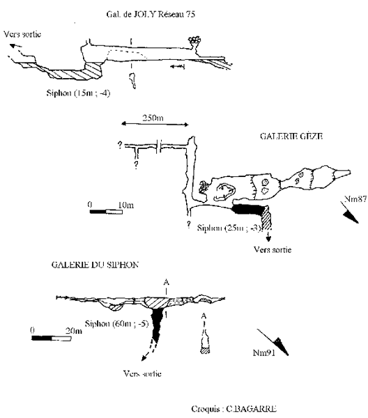 1991: C.BAGARRE plonge la galerie du siphon et bute sur un lac impénétrable, interprété comme un S.2 par ses prédecesseurs.