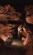 * sur la gauche, au sommet d'une grosse coulée stalagmitique, débute la galerie De Joly ou du CAF qui se développe sur plus de 1700m après une série de passages bas et aquatiques.