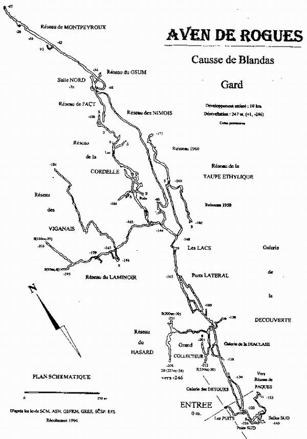 Une succession de petits puits descend à -223. Aux environs de -100,
